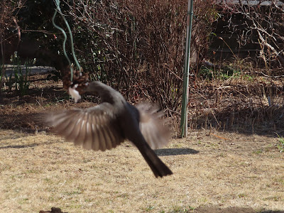朝、カーテンを開けてびっくり。大雪!すでにかなり積もっていた。給餌台もこのとおり。スズメたちも驚いているのでは?このまま降り続けるのかと思ったら、徐々に小止みになり、9時半ごろには晴れてきた。